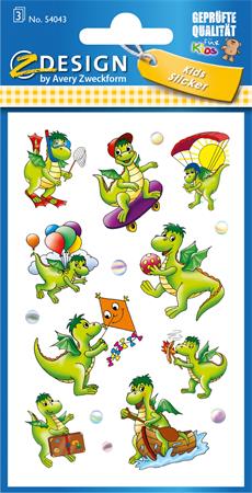 Matrica, papír,  3 ív, 76x120 mm,  AVERY ZWECKFORM, "Z-Design No.54043", sárkányok