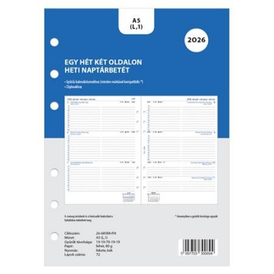 KezdőlapIrodaszerekIrodai papíráruNaptárak, agendák, betétlapokKalendárium betét, tervező, heti, A5 (L), FILOFAX, 2026