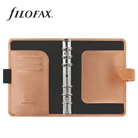 Kalendárium, gyűrűs, betétlapokkal, personal méret, FILOFAX, "Saffiano Metallic", rózsaarany