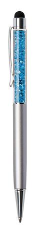 Golyóstoll, ezüst, felül aquakék SWAROVSKI® kristállyal töltve, érintővel, 14 cm, ART CRYSTELLA®