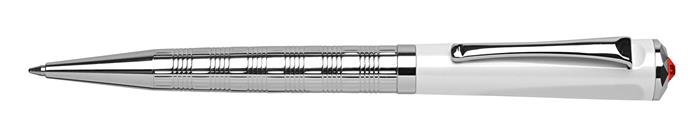 Golyóstoll, fehér-ezüst "Rialto", light siam piros SWAROVSKI® kristállyal, 14cm, ART CRYSTELLA®