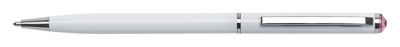 Golyóstoll, fehér "SLIM", rózsaszín SWAROVSKI® kristállyal, 13 cm, ART CRYSTELLA®