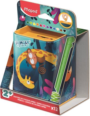 Színes ceruza készlet, fém perselyben, MAPED „Jungle Fever Infinity Kidy”, 12 különböző szín