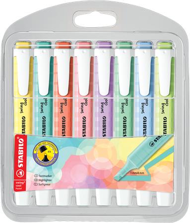 Szövegkiemelő készlet, 1-4 mm, STABILO "Swing Cool Pastel", 8 különböző szín
