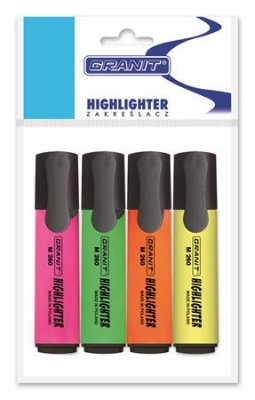 Szövegkiemelő készlet, 1-5 mm, GRANIT "M260", 4 különböző szín