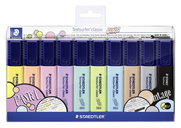 Szövegkiemelő készlet, 1-5 mm, STAEDTLER "Textsurfer Classic Pastel 364 C", 10 különböző szín