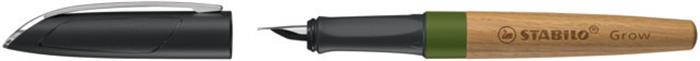 Töltőtoll, tölgyfa tolltest, zöld kiegészítővel, STABILO "Grow"