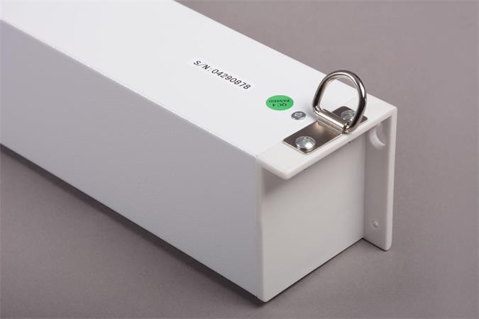 kézi mozgatású, rolós vetítővászon, lassított visszahúzású mechanikával