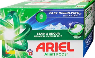 KezdőlapÜzemeltetésHigiéniai termékekTisztítószerekMosókapszula, 22 db, ARIEL "Mountain spring"