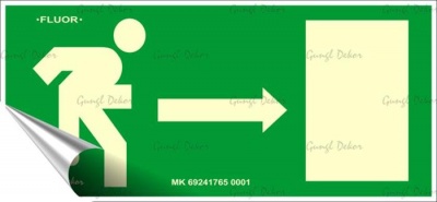 Információs matrica, 25x11,5 cm, fluoreszkáló, utánvilágítós, "Menekülési irány jobbra"