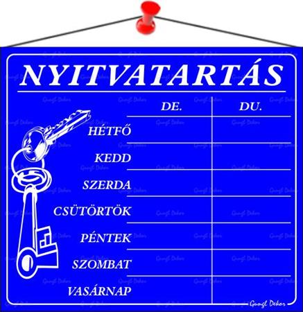 Információs tábla, 20x17,5 cm, "Nyitvatartás", kék