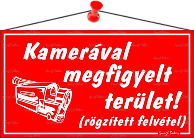 Információs tábla, 22,5x12,5 cm, "Kamerával megfigyelt terület", piros